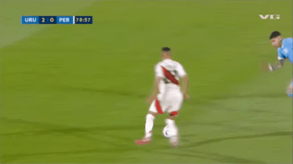 80’罗德里格斯传中,维纳斯抽射攻门得手,乌拉圭3-0秘鲁
